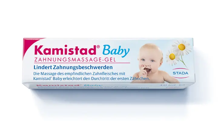 Ihr Baby zahnt? Dann massieren Sie eine erbsengroße Menge Kamistad® Baby Gel leicht in das Zahnfleisch Ihres Kindes ein. Beruhigt und pflegt sanft mit der Kraft der Kamille.